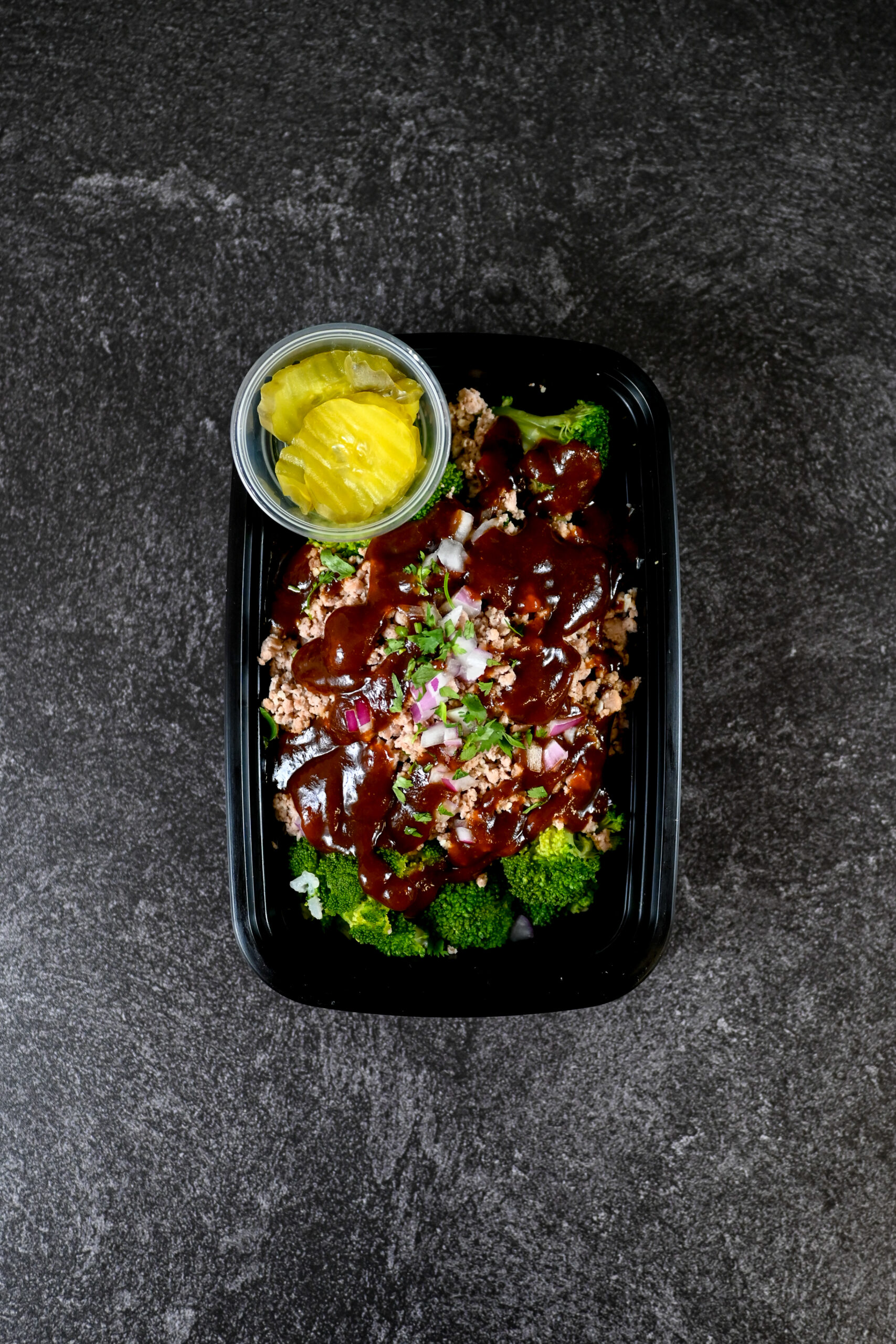 OUR FAMOUS GARLIC BUTTER TURKEY SERVED WITH RICE, BROCCOLI, PURPLE ONIONS, AND PICKLES ON THE SIDE WITH SWEET BBQ SAUCE!