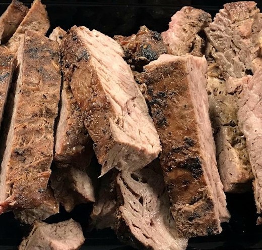 1 pound of beef fajita, sliced. 4 servings at 4oz each. Macros are for 1oz.