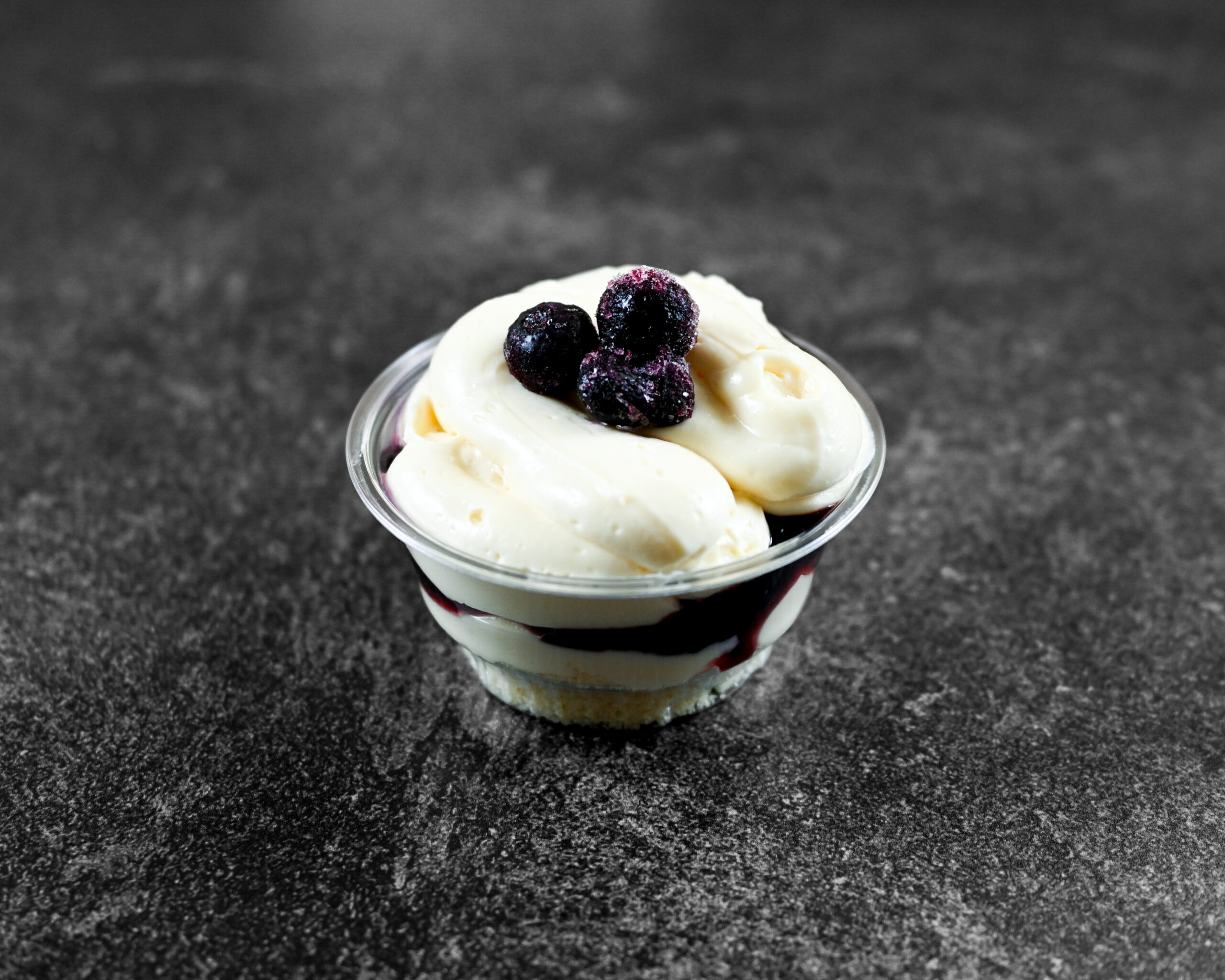 BALANCE OF RICHNESS, THIS CREAMY CHEESECAKE AND THE SWEET BURST OF JUICY BLUEBERRIES IS PERFECT FOR THIS MONTH! EVERY BITE DELIVERS SMOOTH, VELVETY CHEESECAKE GOODNESS, MAKING THE ULTIMATE PROTEIN SNACK!