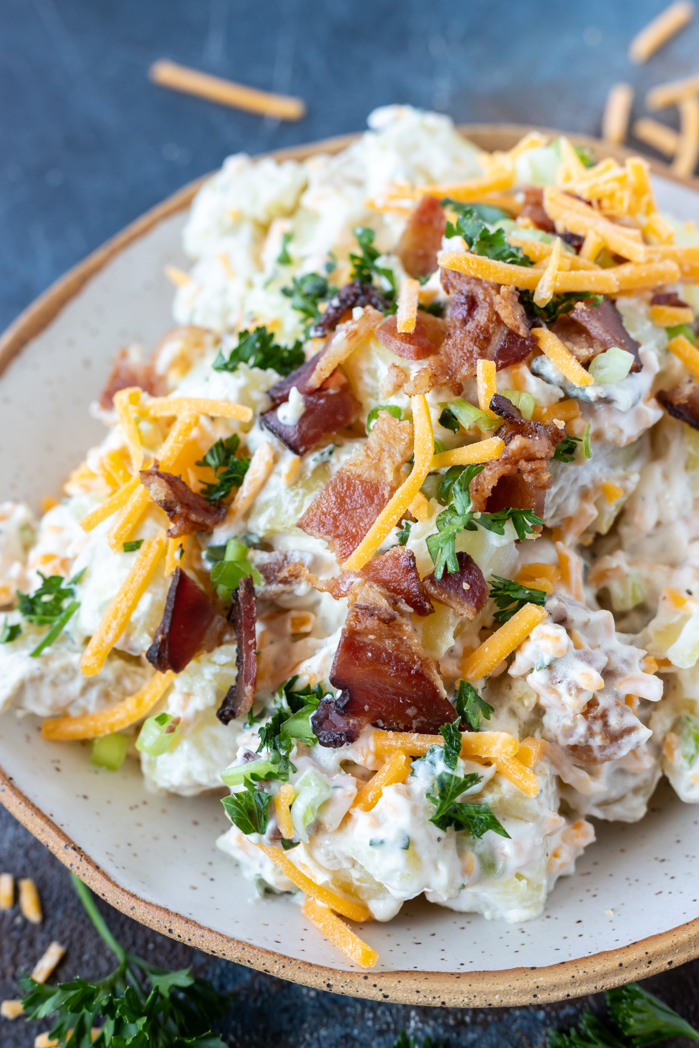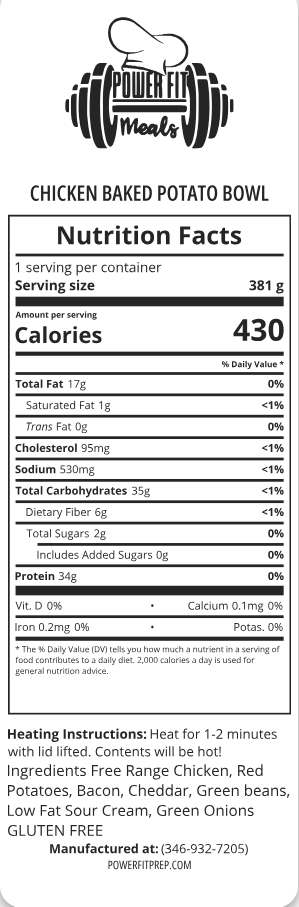 FAN FAVE! OUR HEALTHY SPIN ON A BAKED POTATO BOWL TOPPED WITH CHICKEN, BACON, CHEDDAR AND GREEN BEANS!