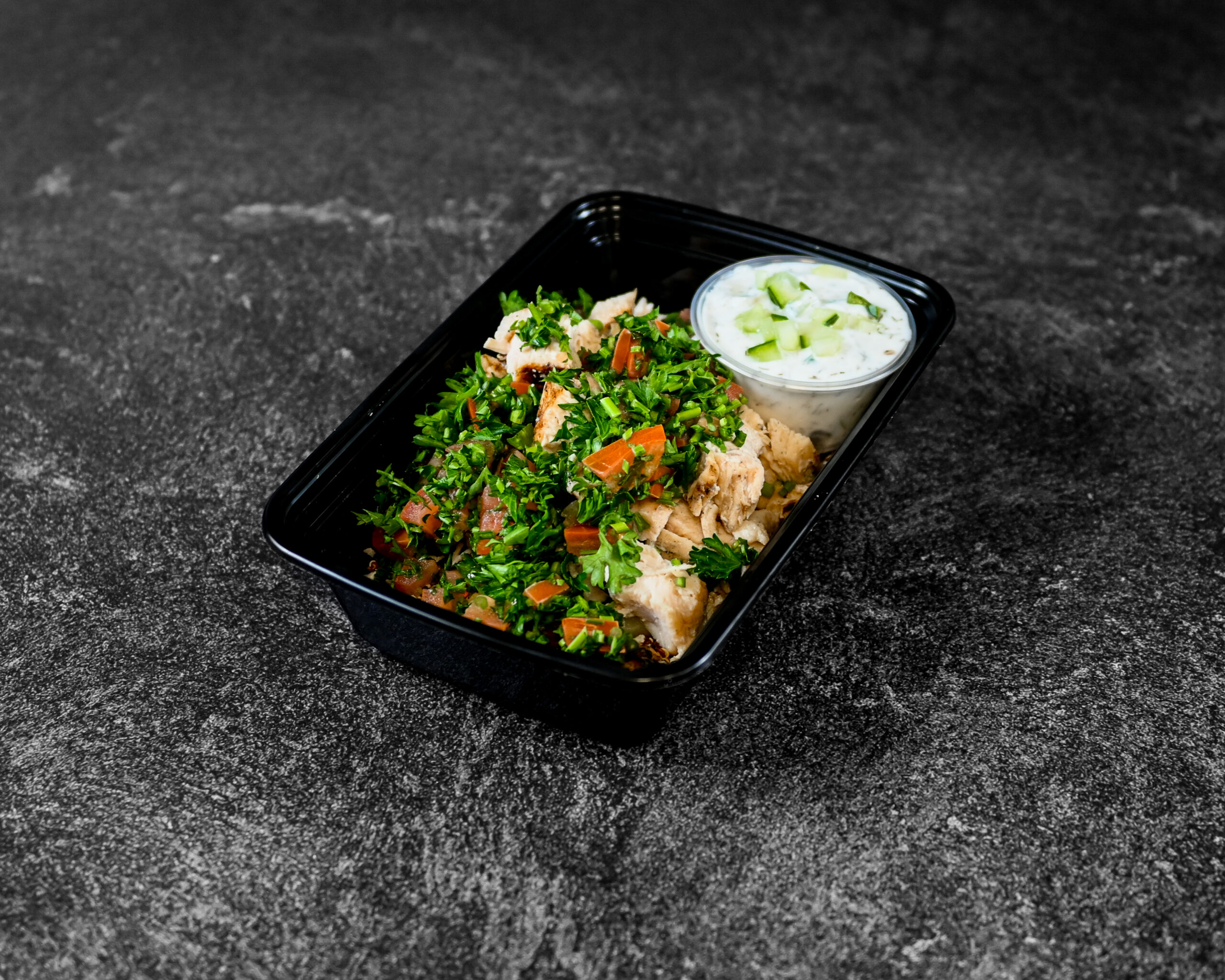 TENDER GRILLED CHICKEN SERVED OVER A HEARTY BASE OF QUINOA, ZUCCHINI AND TABBOULEH , TOPPED WITH A SPRINKLE OF FETA, WITH A SIDE OF CREAMY HOUSE-MADE TZATZIKI SAUCE. 🍽🔥
