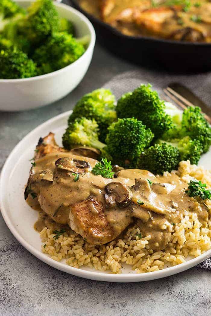 CREAMY MUSHROOM GARLIC SAUCE OVER CHICKEN BREAST, RICE, AND BROCCOLI 🍽️🔥