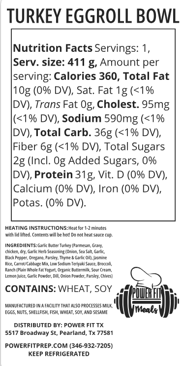 Garlic butter ground turkey, teriyaki sauce, cabbage and carrot mix, broccoli, jasmine rice, ranch yogurt sauce