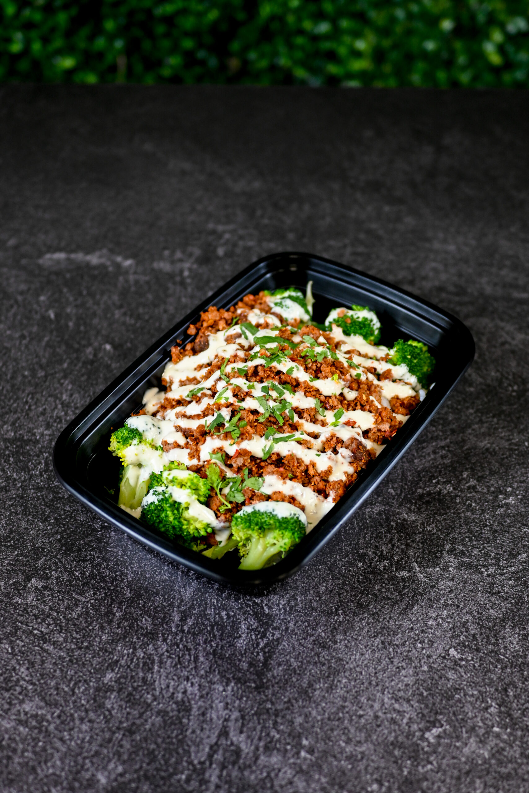 HOT AND SPICY! LEAN GROUND BEEF SERVED WITH RICE AND BROCCOLI AND RANCH DRIZZLE ON TOP!