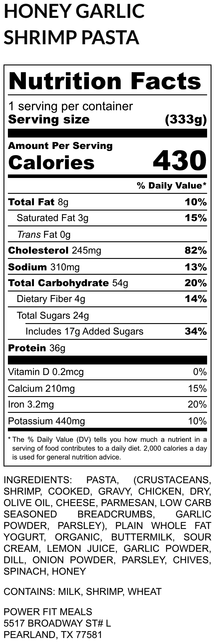 TOP SELLER! FRESH SAUTEED SHRIMP OVER PASTA AND SPINACH WITH OUR CREAMY HONEY SAUCE!