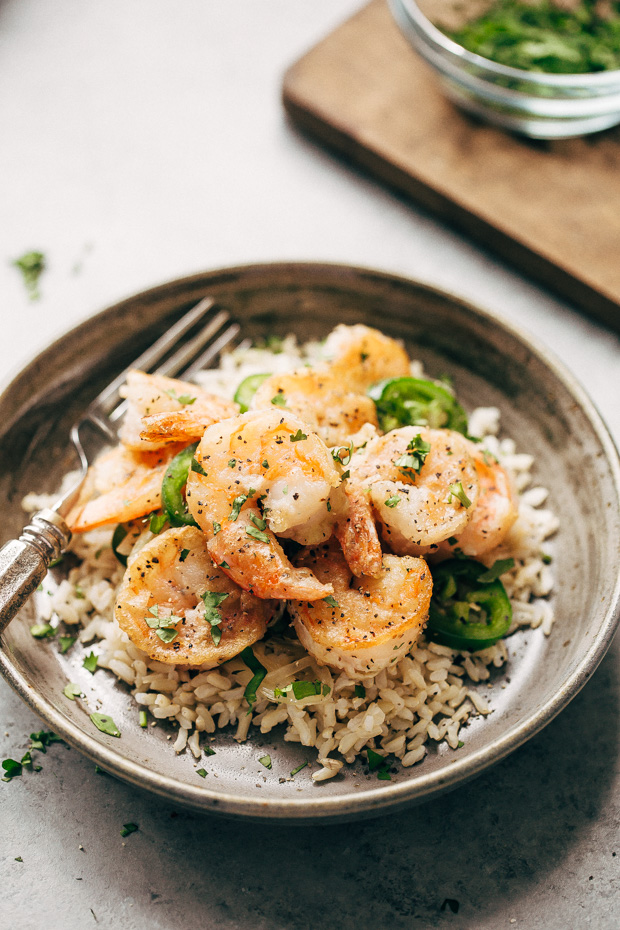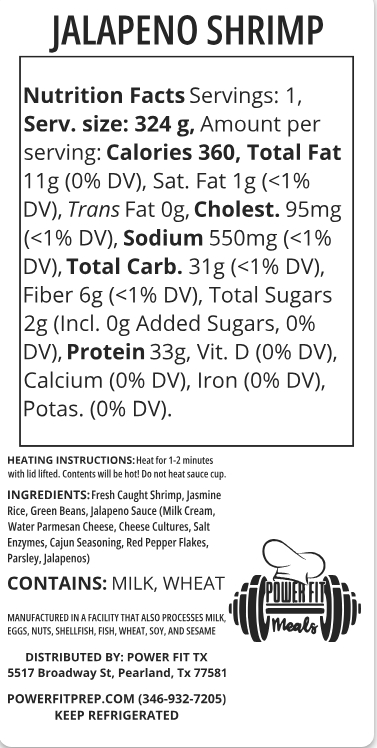 OUR CREAMY JALAPENO SAUCE OVER FRESH SAUTEED SHRIMP, JASMINE RICE, AND GREEN BEANS