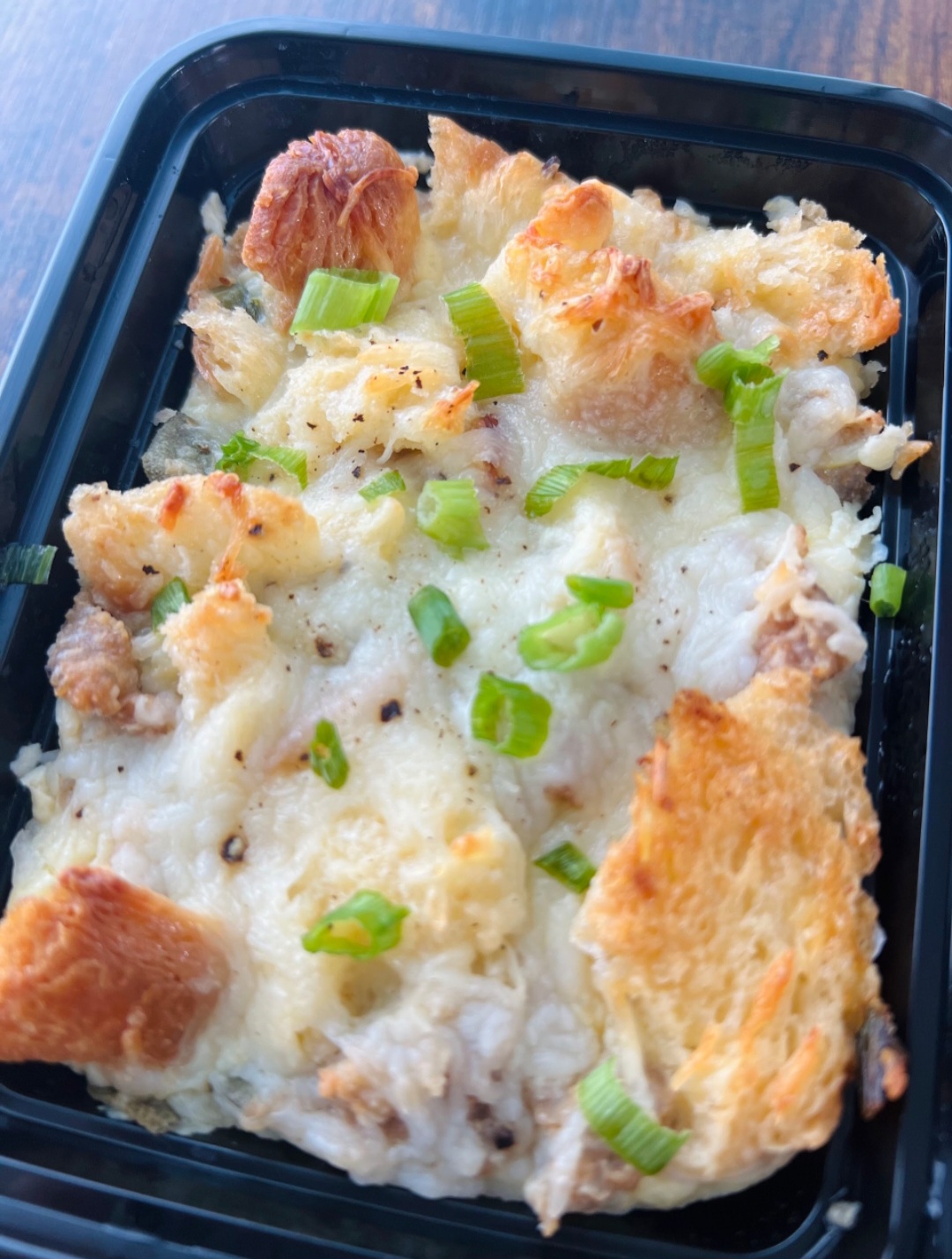 FUEL YOUR MORNING WITH THIS ABC BREAKFAST CASSEROLE! BLENDED CHEESES, EGGS, ITALIAN SAUSAGE, KETO DOUGH, AND GREEN ONIONS!
