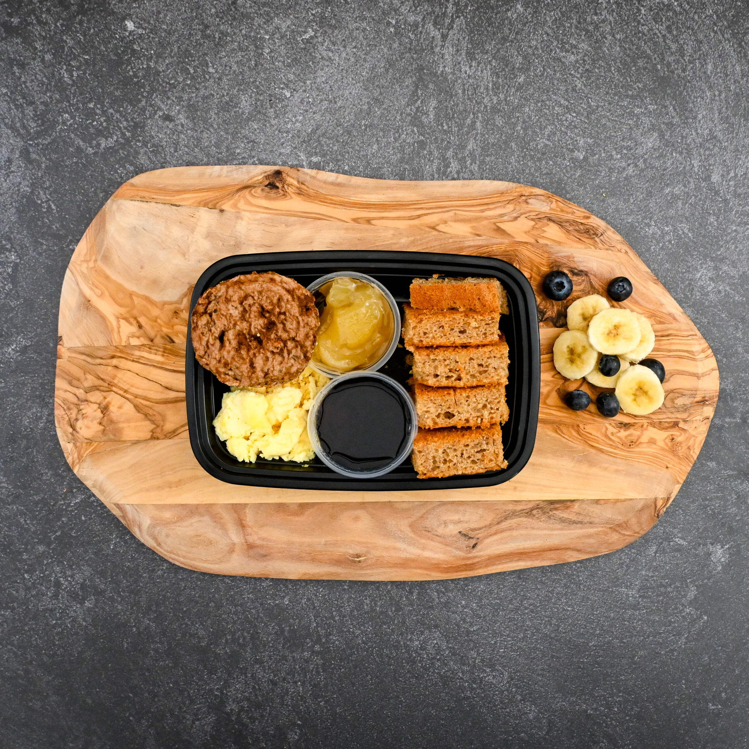 DELICIOUS PANCAKE BITES WITH APPLE PIE TOPPING, TURKEY SAUSAGE, EGG CUPS AND SUGAR FREE SYRUP!