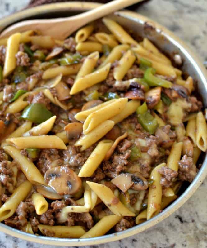 PHILLY STEAK MEAT SERVED OVER PENNE PASTA SERVED WITH MUSHROOMS, BELL PEPPERS, MOZZARELLA CHEESE, AND RANCH ON TOP!