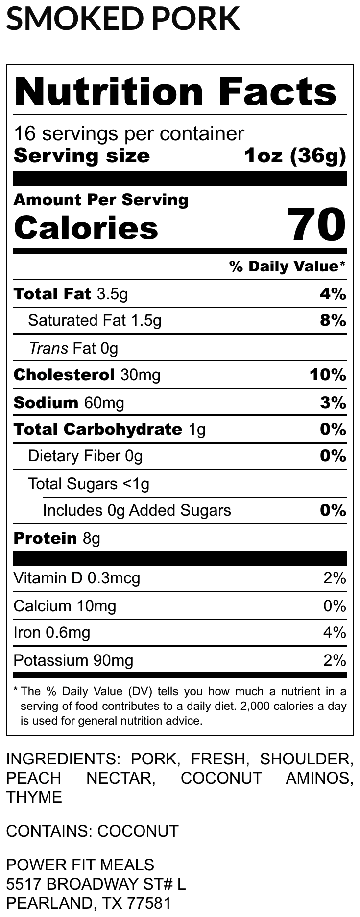 SOAKED IN BRINE AND SMOKED TO PERFECTION! PACKED AND READY TO GO FOR YOUR MEAL PREP NEEDS!