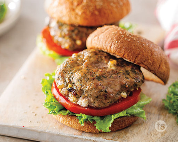 HIGH PROTEIN TURKEY BURGER LOADED WITH FETA AND SPINACH. SERVED WITH MASHED SWEET POTATOES, GREEN BEANS, AND A SANDWICH THIN.