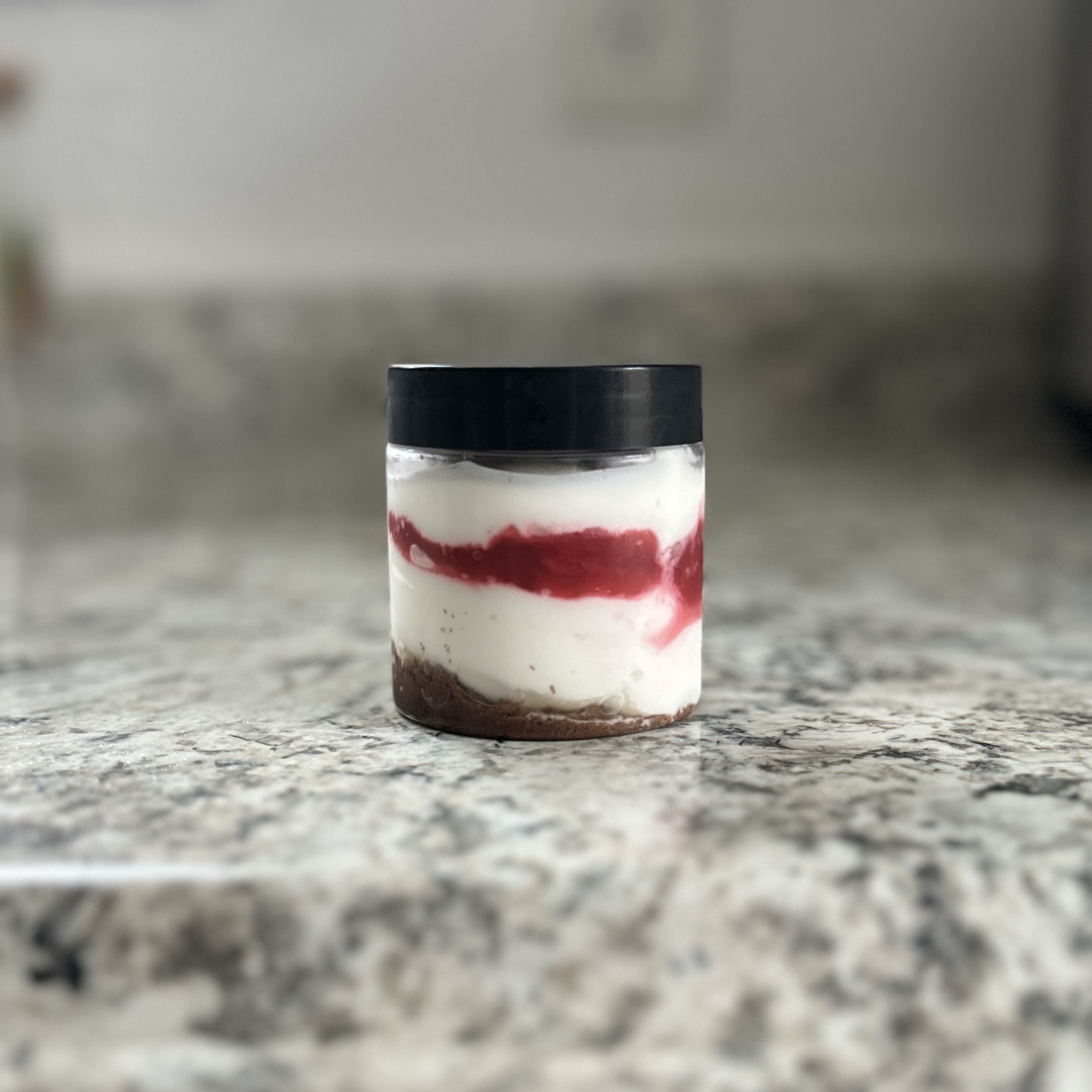 PROTEIN DESSERT IN A JAR FULL OF GREATNESS! STRAWBERRY CHEESECAKE FLAVOR