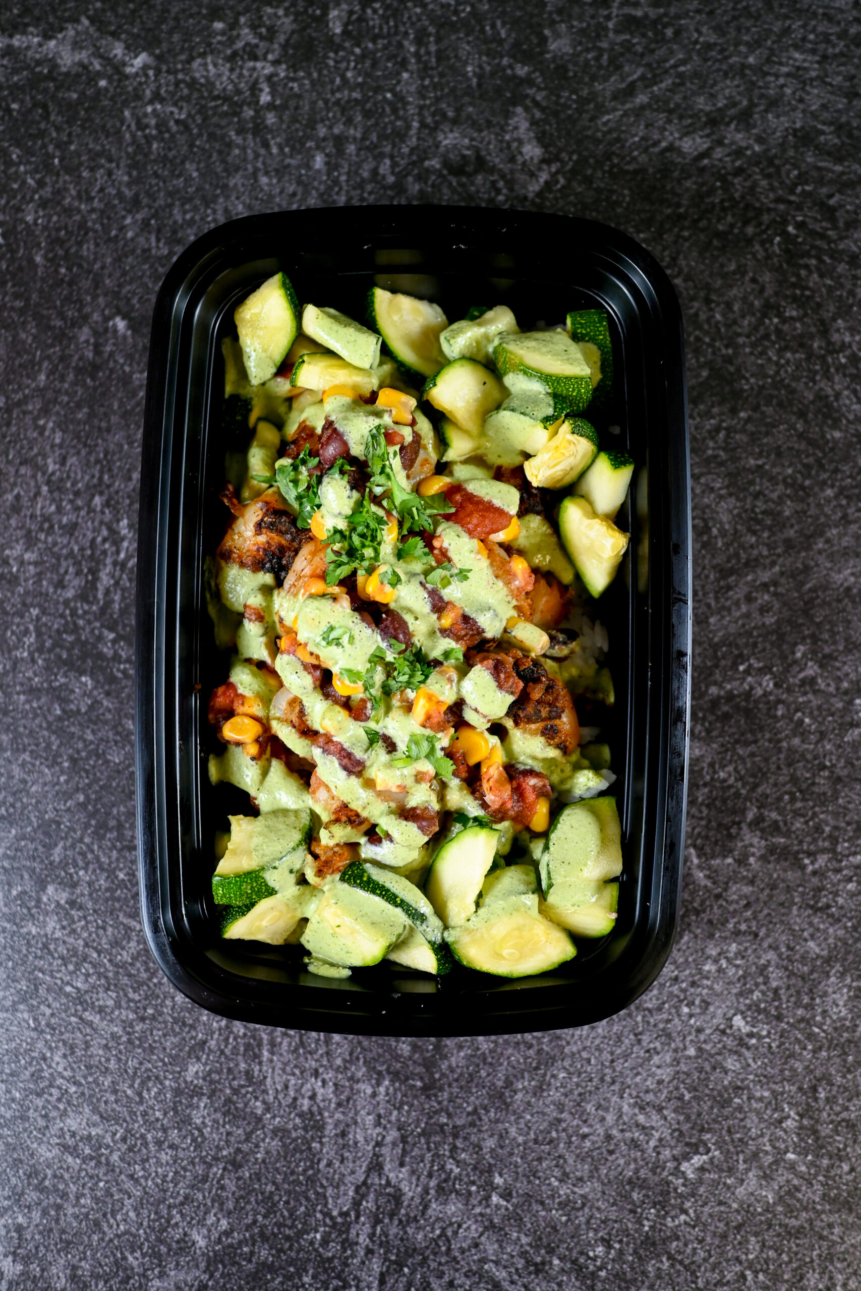 A vibrant and zesty bowl loaded with seasoned shrimp, corn salsa, zucchini, rice, and black beans, all brought together with a drizzle of cilantro lime sauce. This dish delivers a fresh, satisfying balance of textures and bold flavors for a delicious, protein-packed meal!